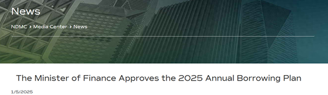 当地时间周日(1月5日),沙特国家债务管理中心(NDMC)在官网发布声明表示,沙特财政大臣穆罕默德·杰德安已批准了2025财年的年度借款计划。