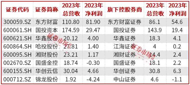 除已公告实施吸收合并的国盛金控,还有一些券商仍是A股上市母公司的全资或控股子公司,其中就包括华创云信与华创证券、东方财富与东方财富证券、华鑫股份与华鑫证券、国投资本与国投证券、湘财股份与湘财证券、哈投股份与江海证券、锦龙股份与中山证券等。面对这样的股权架构,在综合考虑母子公司业绩表现和发展战略后,不同企业作出了不同的选择。